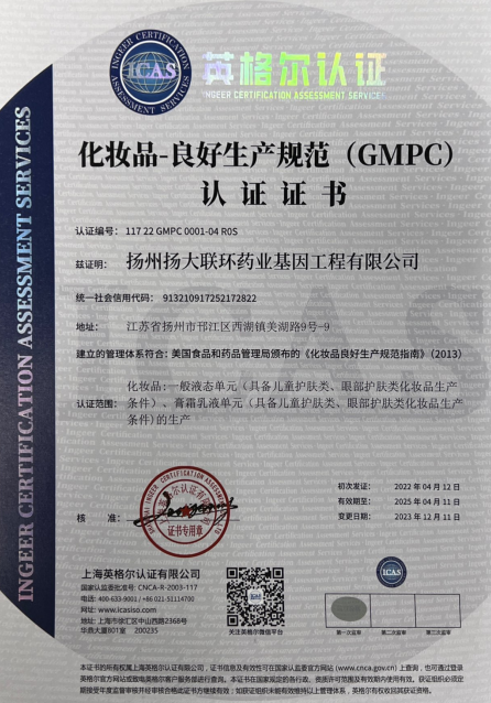 近日,聯(lián)環(huán)基因順利通過GMPC認(rèn)證及歐盟ISO22716質(zhì)量體系認(rèn)證年審。