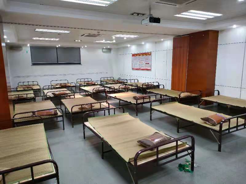 在前一日下午,物流中心即向員工征求了集中住宿進行自主隔離的意見,尤其是物流中心的領(lǐng)導(dǎo)們帶頭,各經(jīng)理及主管積極響應(yīng),物流員工紛紛報名。不少人家里存在這樣那樣的困難,但聽說是呵護國控?fù)P州這個共同的家園,大家都表示要克服一切困難,堅決參加。8月3日,鑒于嚴(yán)峻的形勢,公司決定在公司內(nèi)部搭建簡易床鋪。
